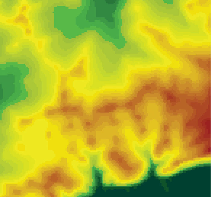 Кроме того, подобные исследования проводились также и с матрицами высот, полученными по горизонталям карт масштаба 1:100 000 с точностью 50 метров на элемент. Построение матрицы производилось с использованием программного продукта КБ «Панорама» — «ГИС-Карта 2008». Целью этого было определение соответствия матрицы SRTM отображению рельефа на топокарте стандартного масштабного ряда. Следует отметить, что построение матрицы высот по карте осуществлялось только по горизонталям. Другие объекты, имеющие характеристику абсолютной высоты и способные уточнить модель (отметки высот, береговые линии) не использовались. Вероятно, что при их включении точность матрицы высот, созданной по карте, улучшится.